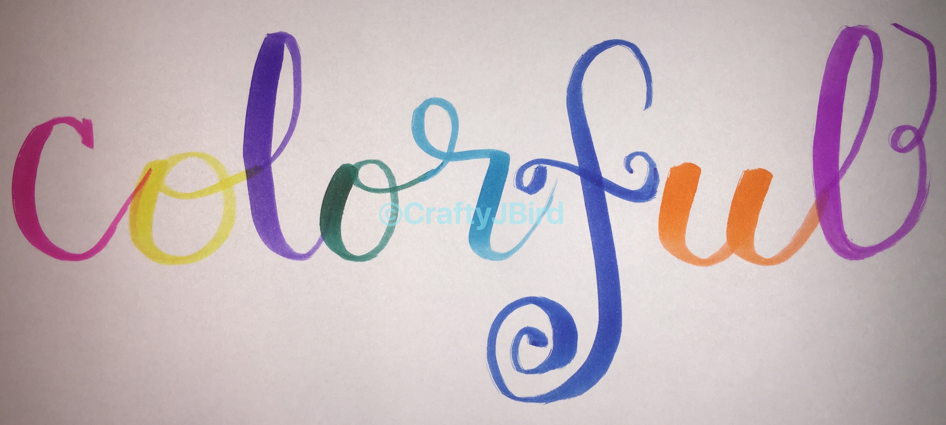 A Few More Ways to Decorate -- Visit CraftyJBird.com for more info.. When you want to show off more than one color but not do the blending technique, just write each letter in it’s own color. Though I don’t use it often, I like the look of it and it also lets me see where I need to work on my strokes at various times so it’s definitely a good practicing technique.