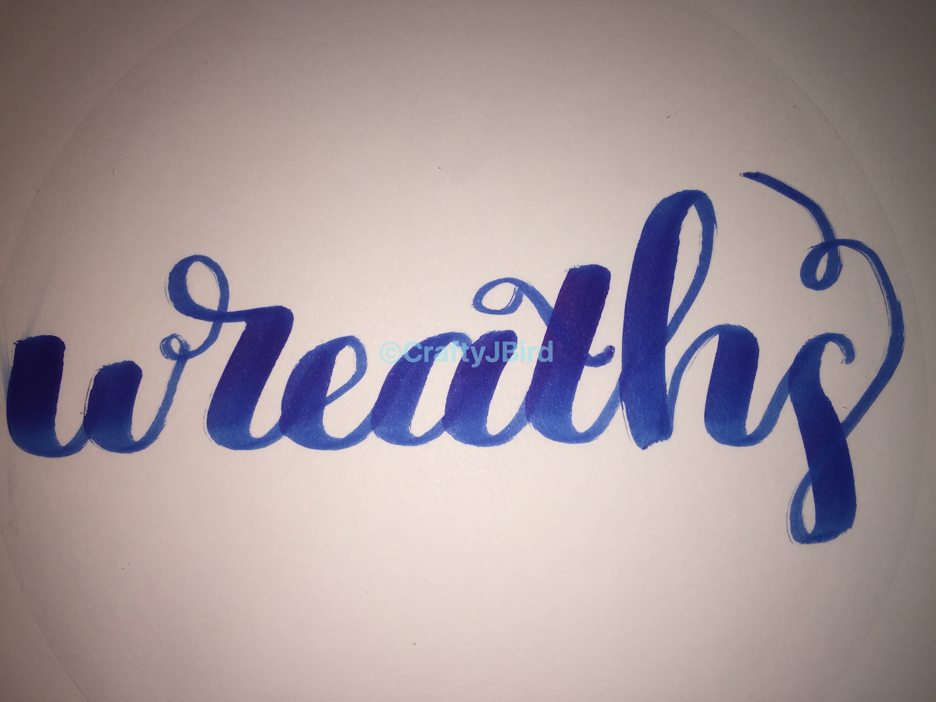 A Few More Ways to Decorate -- Visit CraftyJBird.com for more info.. For these flowers on my wreath today, I used my Tombow Dual Brush Pen numbers 845 and 565. Then I used number 555 for the word. So I was sure not to mess up my wreath, I wrote the word out as you can see on a separate sheet of paper. I then used my Photoshop Elements program to ‘erase’ around the word and then used my flowers as the background and placed my word on top in the “expert” portion of the program.
