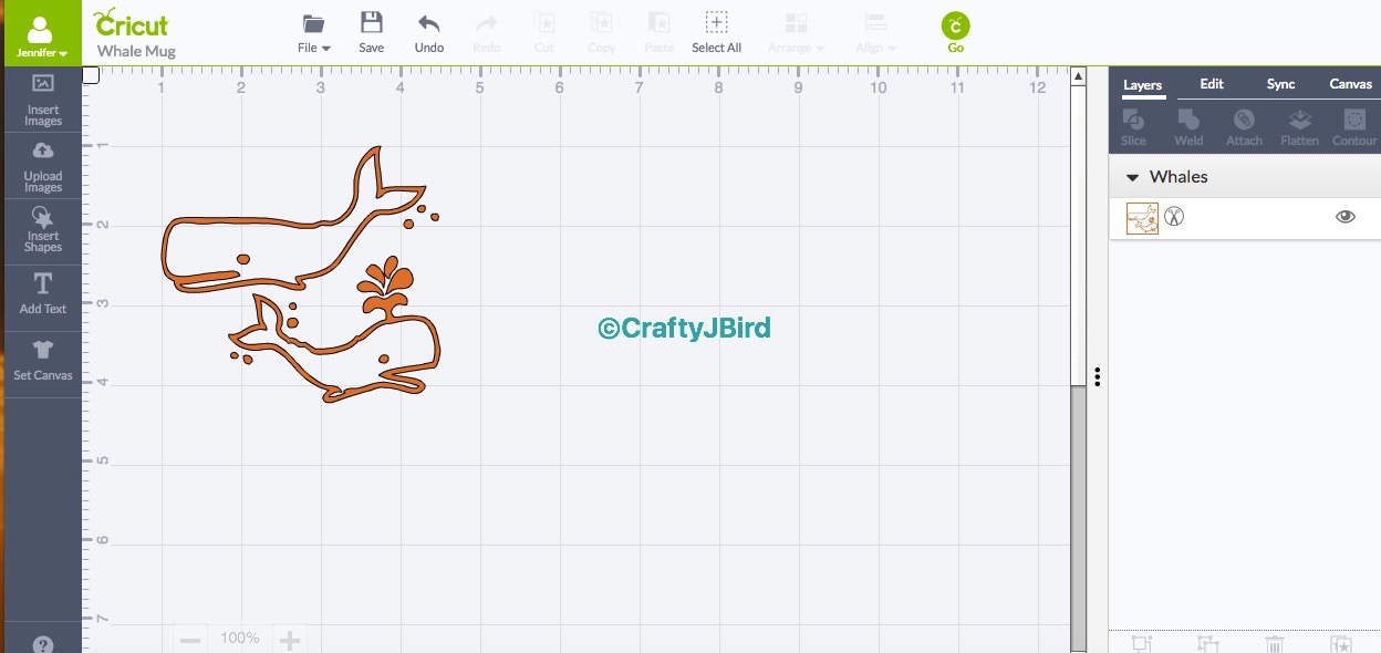 Next, I opened up my Cricut Design Space and found the “Make It Now” projects name “Whale Mug.” You have the choice of making it as is or customizing it. I decided to customizing it to make the whales a bit bigger.