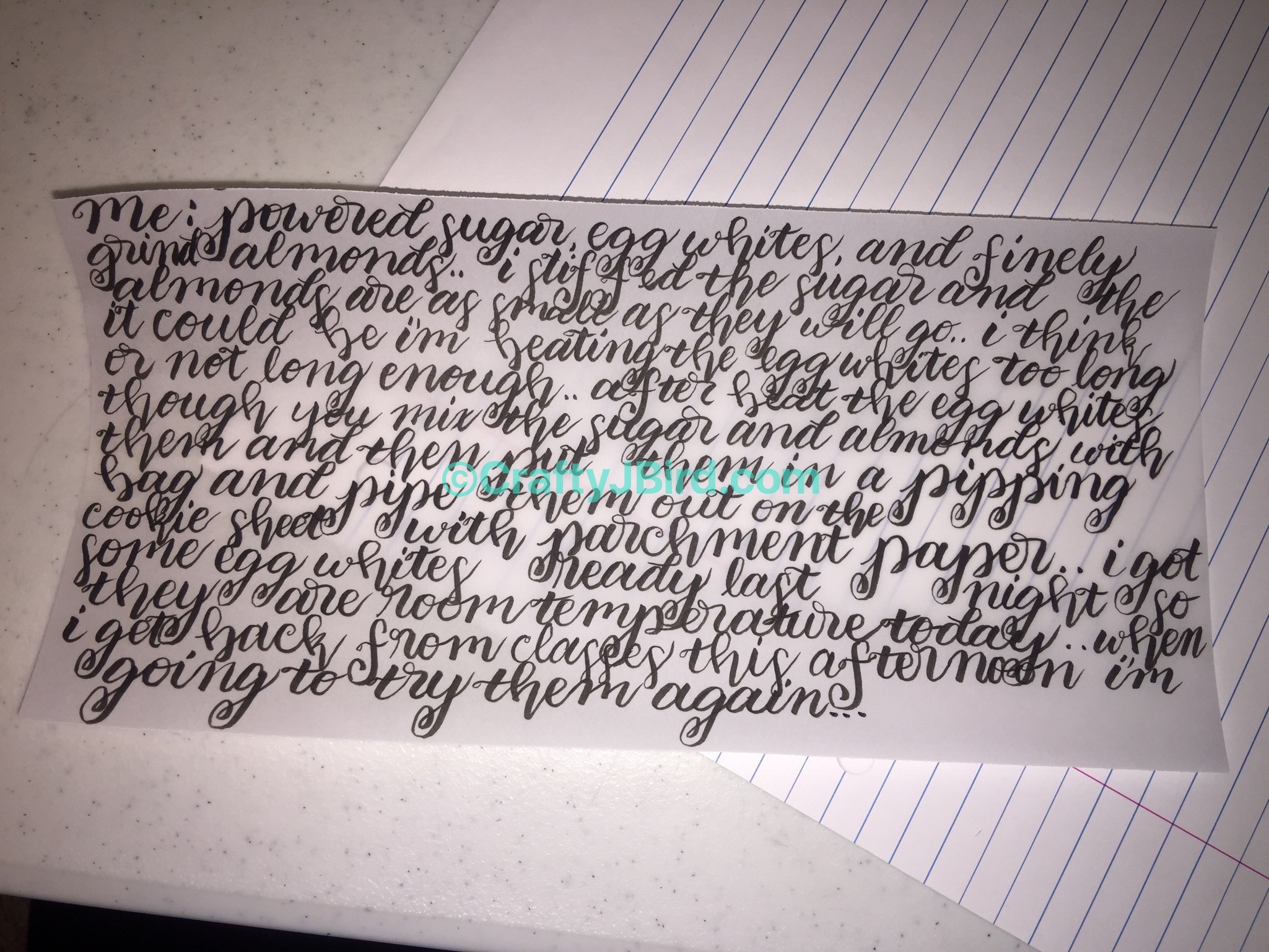 Since this is “Write It Wednesday,” I didn’t forget the main point of this post. Here above is what I have been doing when my Activity Log posts. I’ve been putting my learning calligraphy to work. This particular post is about French Macarons, a conversation my sister and I were having on Facebook through out the day of my first day at Southern Miss.