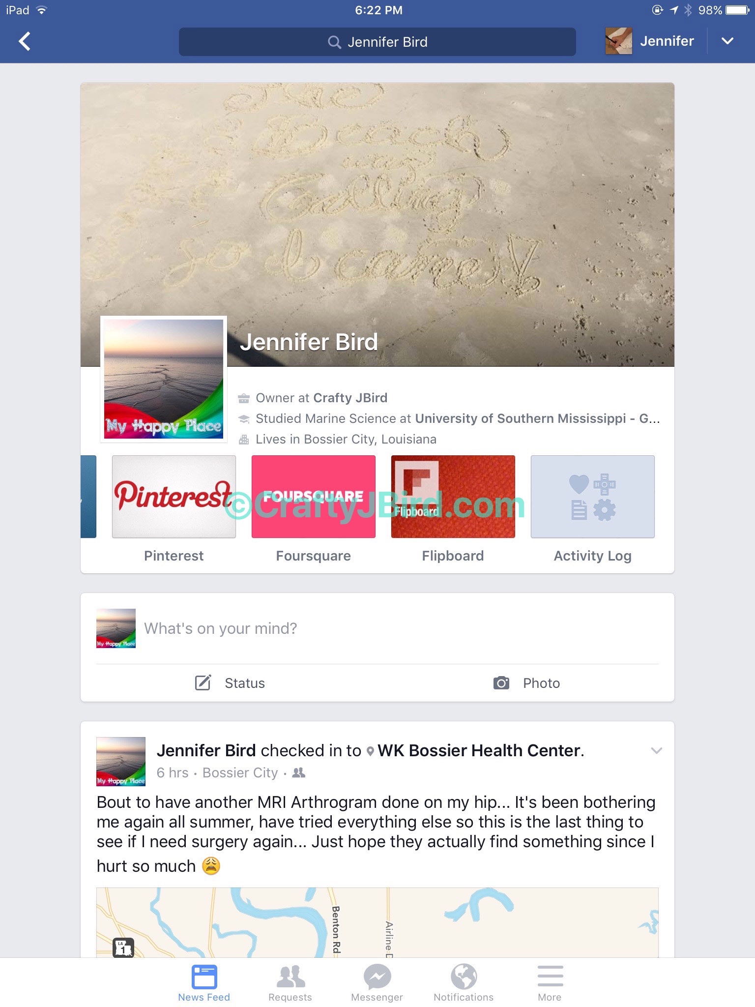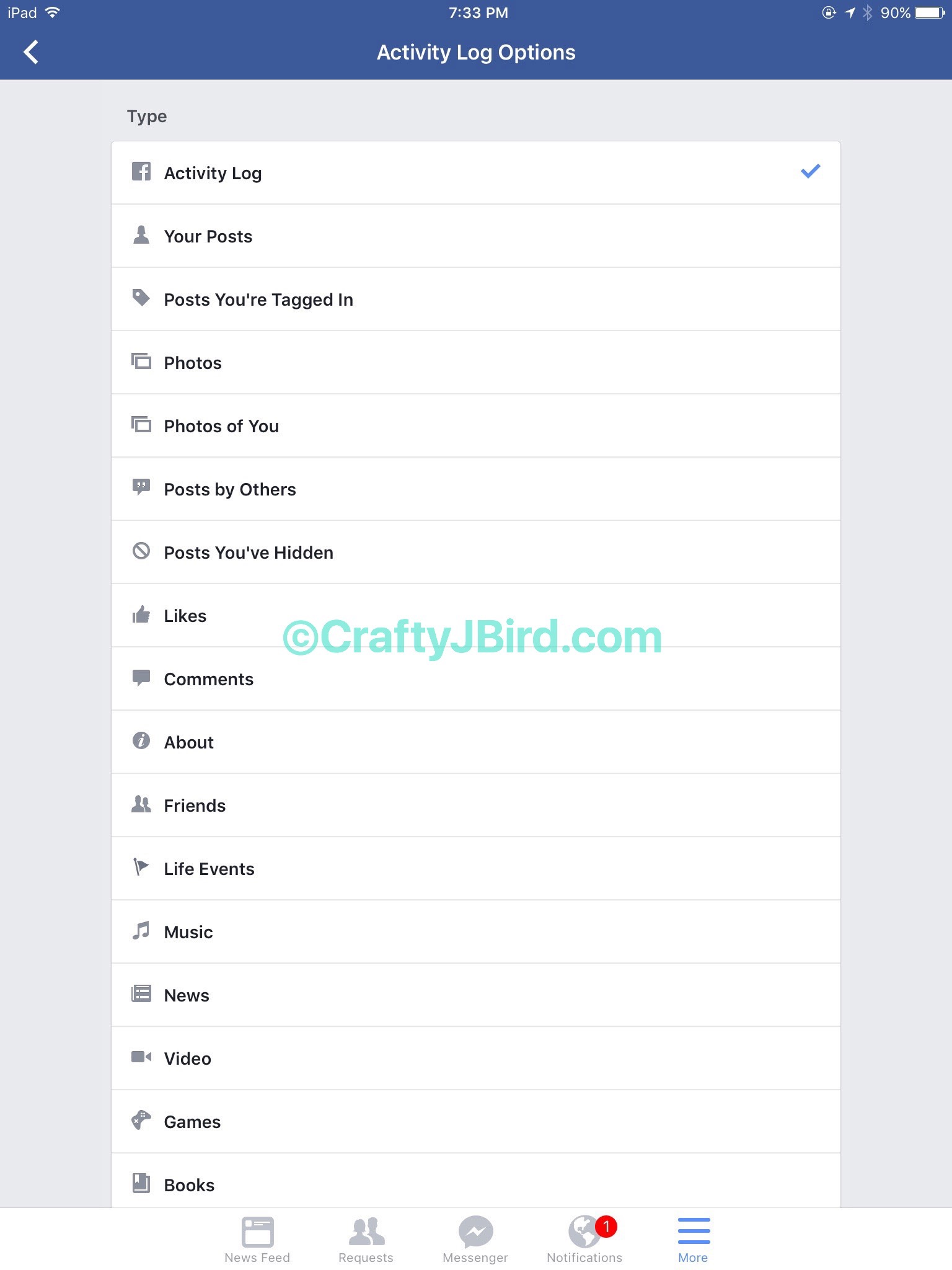 On the iPad, it’s a bit different where once you are on your profile page, you have to scroll over where it has your “About,” “Friends,” “Photos,” etc along the top under your profile picture. Your “Activity Log” is all the way at the end, at least that’s where mine is.