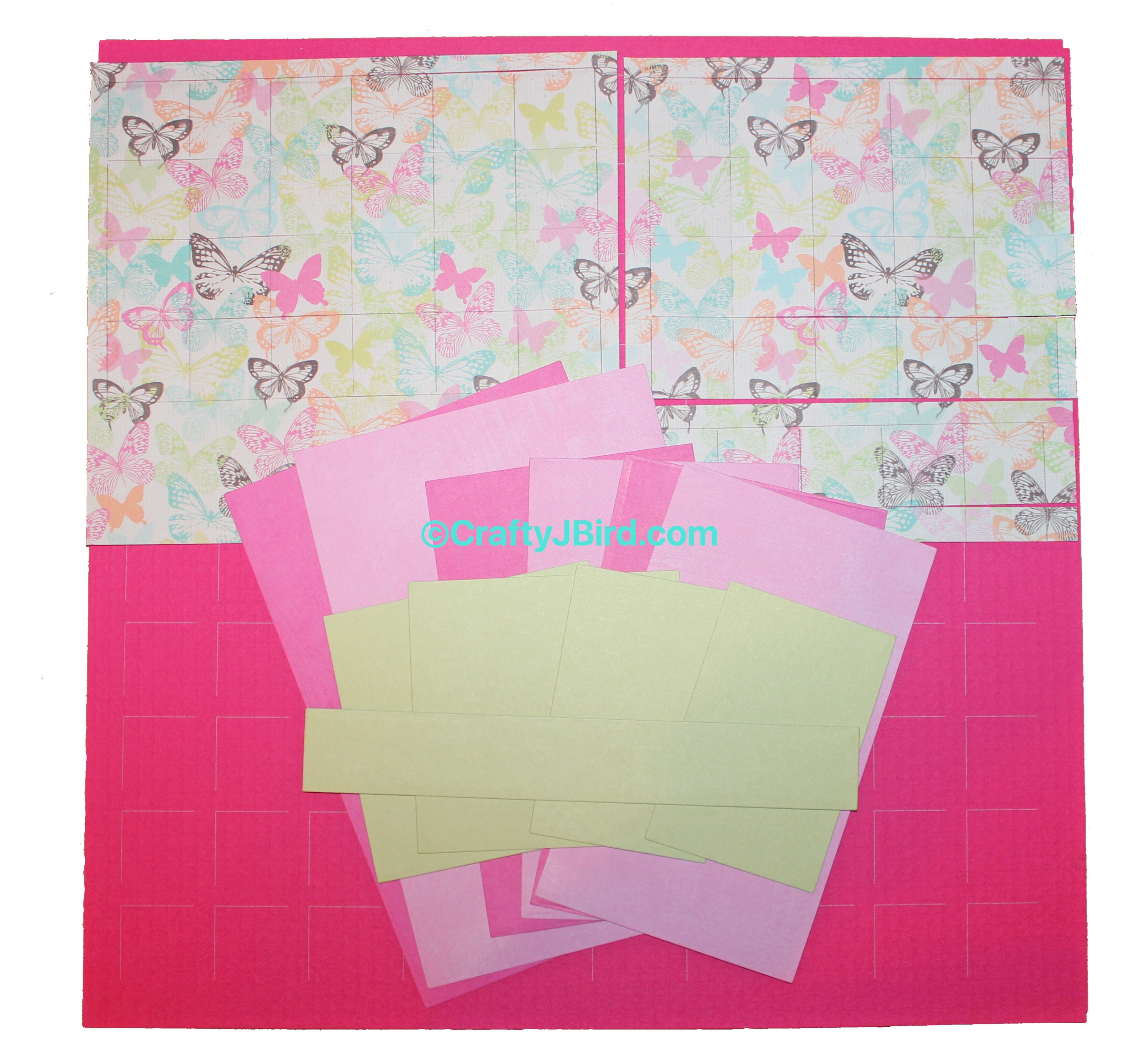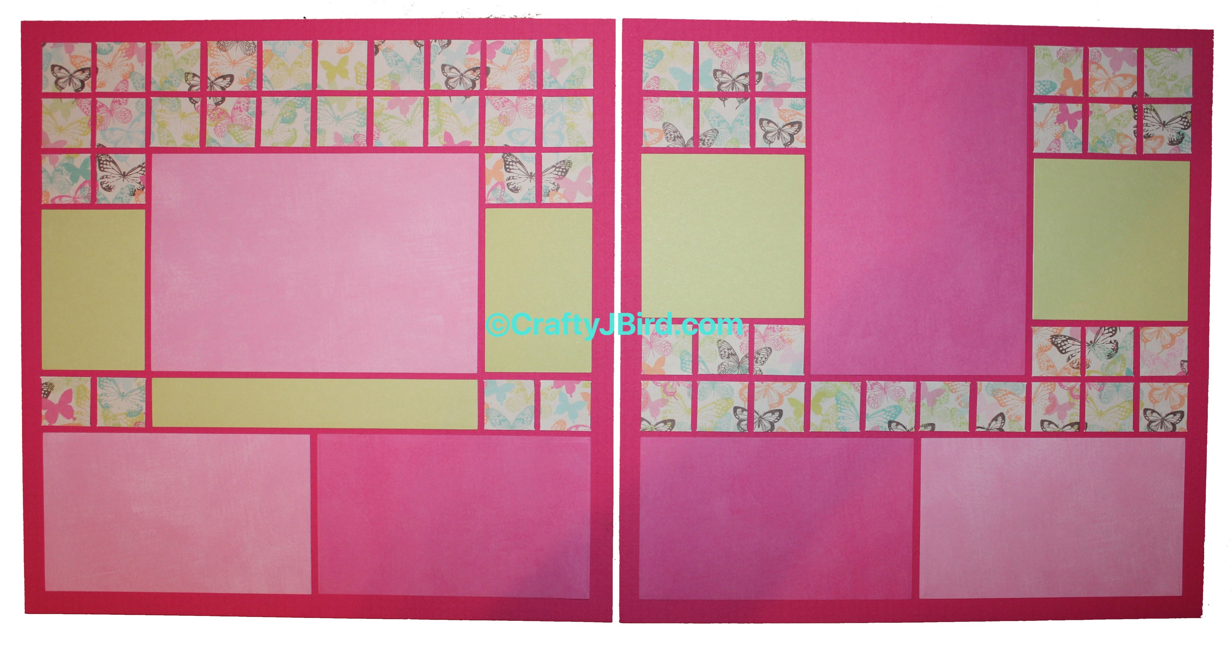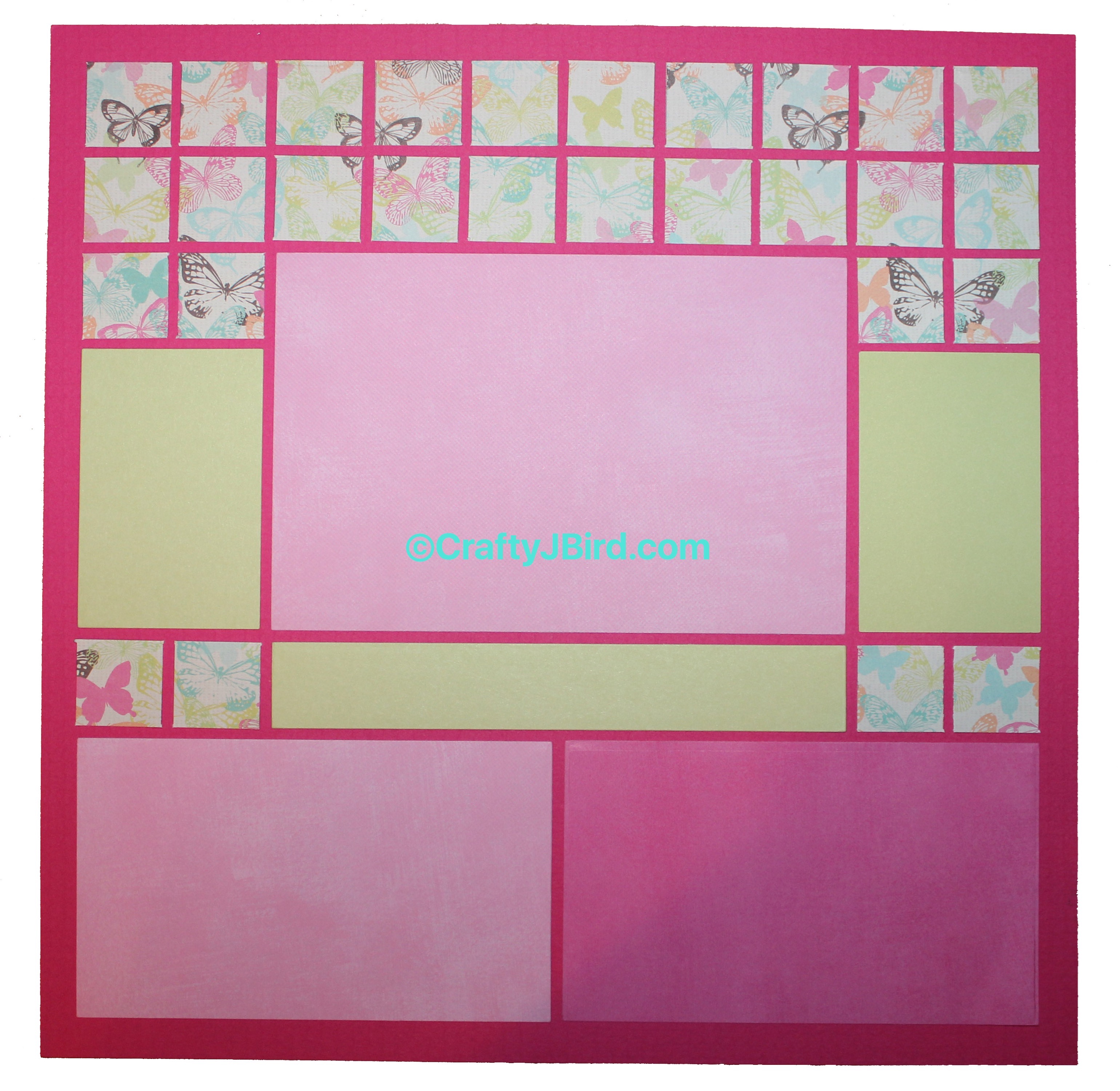 Butterfly Love -- Visit CraftyJBird.com for more info...Butterfly Love -- Visit CraftyJBird.com for more info... Finally, I added my pink pieces to both sides of my layout. I purchased the pink paper from Hobby Lobby too for about $0.49.