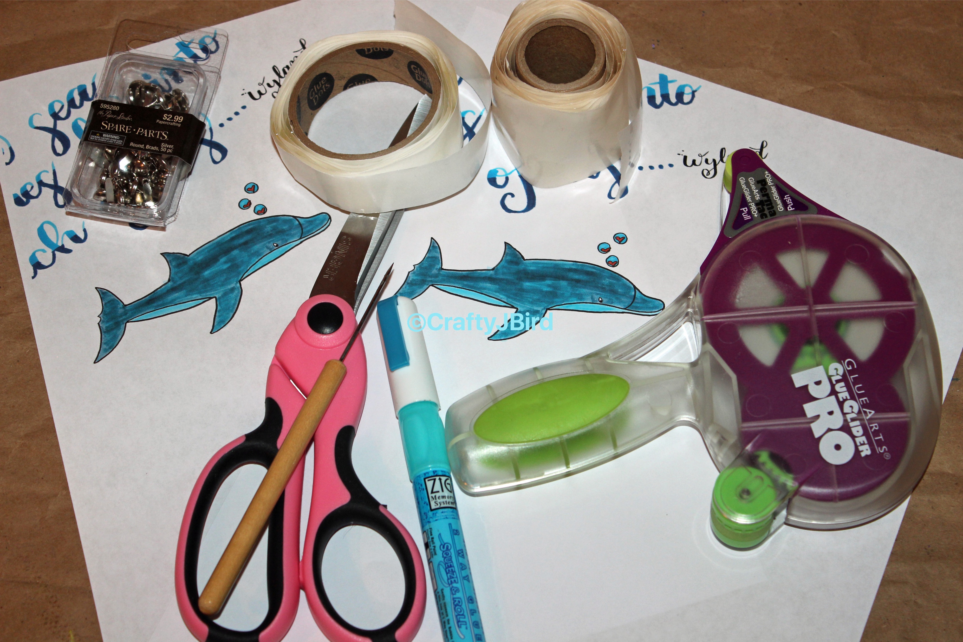 So the first thing I did was take the drawing I did for my “Wyland’s Dolphins” post and made a copy of it on my printer but shrunk it down to 60%. I printed out a total of four copies just in case. Then I carefully cut out two of the dolphins and the three bubbles above one of them.