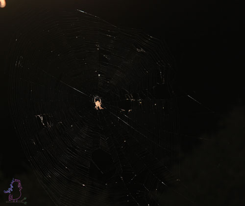 Since I wasn’t getting that great of pictures in the with it being dark out, I decided I would get up the next morning and take some more. Got up, went outside and BAM – it was gone! Nothing – it was like the web and spider weren’t even there to begin with the previous night.