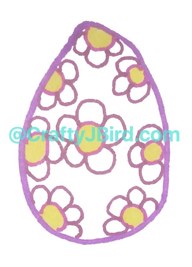 For my second Easter Egg Drawing, I just drew some simple flowers. I used my Purple Sharpie Fine Point Pen for the egg outline and my Bright Pink, Dark Pink, and Yellow Sharpie Ultra Fine Point Pens.
