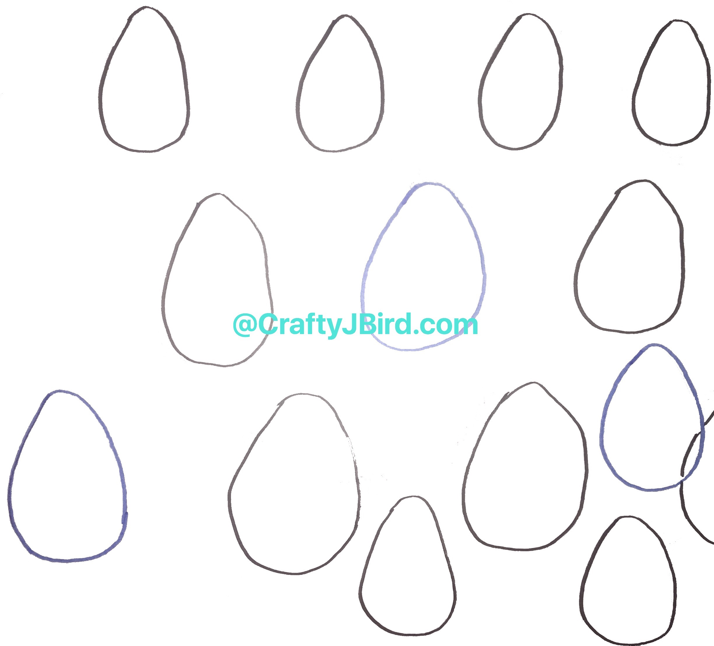 The first thing I did was practice drawing an egg with my 2H Faber-Castell pencil. It took a few tries but I finally got to where they were coming out consistently. Unless you are using a template, everyone’s egg will come out differently. In this case, I hand-drew mine so they are certainly not perfect.