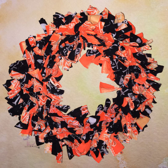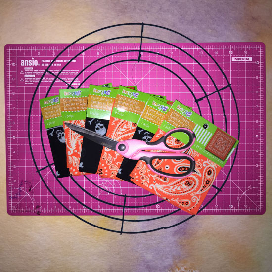 Easy Quick Halloween Wreath -- VIsit CraftyJBird.com for more info...I repeated this process with all six bandanas.