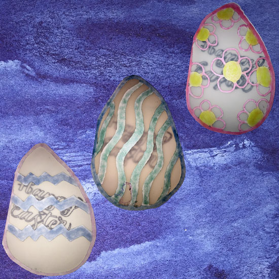 Check out this quick time laspe video made with Go-Pro of chalking in the Easter egg cutouts and then scoring each one along with folding them.
