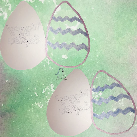 Using my Versamark and Pebbles Inc Chalking Set, I carefully chalked each of the cutouts of my “Happy Easter Cards”