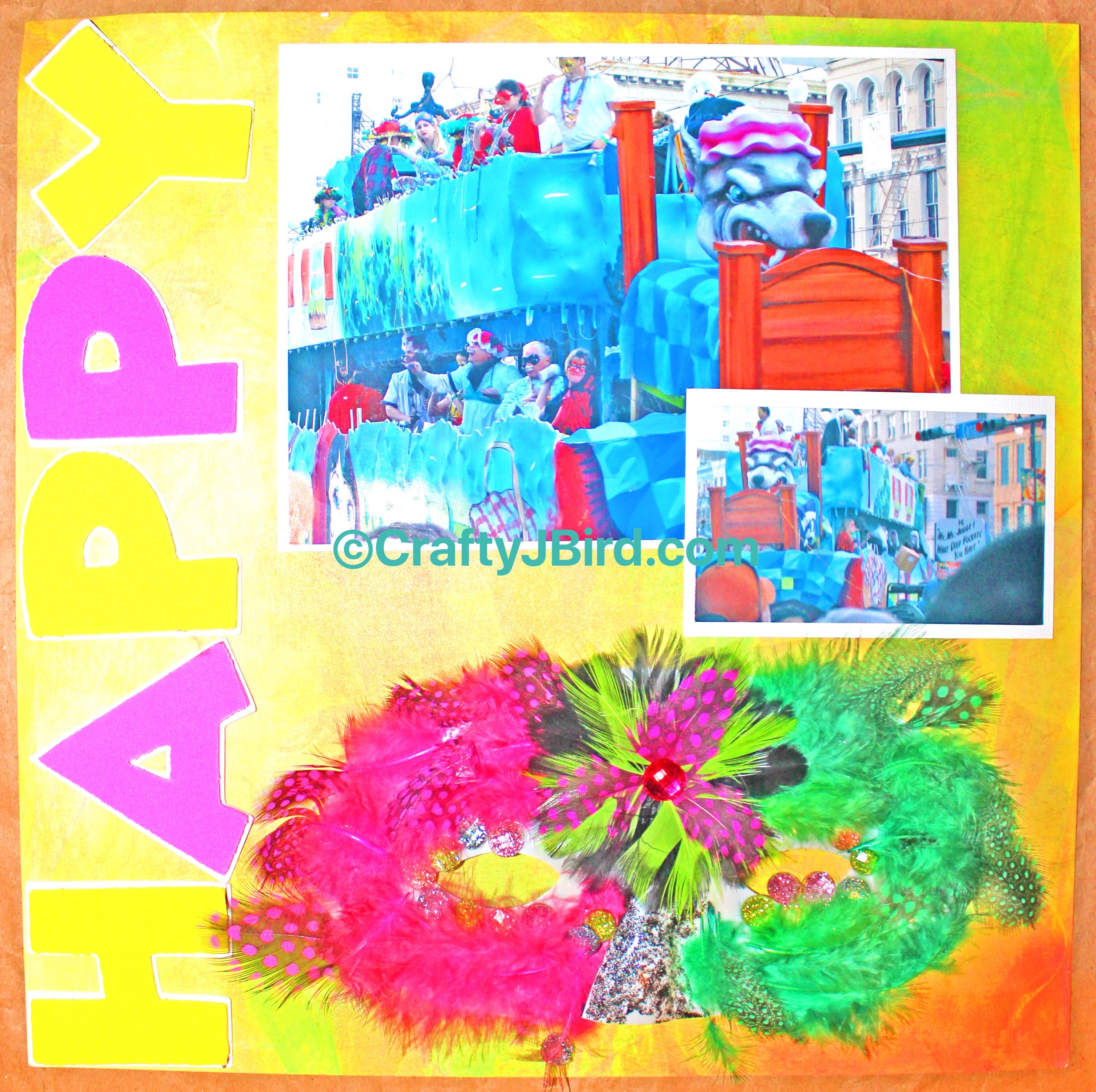 Happy Mardi Gras -- Visit CraftyJBIrd.com for more info.. Happy Mardi Gras -- Visit CraftyJBIrd.com for more info..There you go! A fun, quick, and easy Mardi Gras double page layout to put together for all those parades. Hope you enjoyed! Have a great and safe weekend!