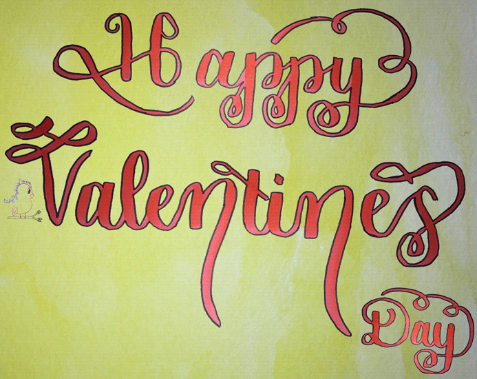 Then, carefully using my Tombow Dual Brush Pen number N15, I used the outlining technique to outline my “Happy Valentines Day” saying.