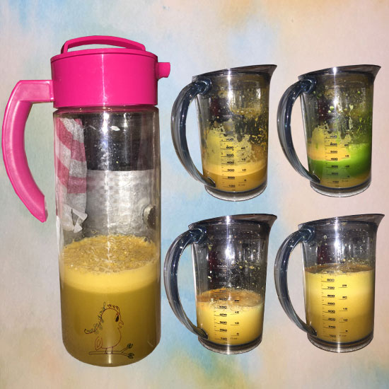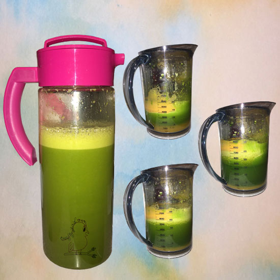 With my Hamilton Beach Juicer, it would have taken triple or even four times as many ‘spins’ to fill my Teavana Pitcher. Which in turn meant a lot longer of running my patients for juicing.