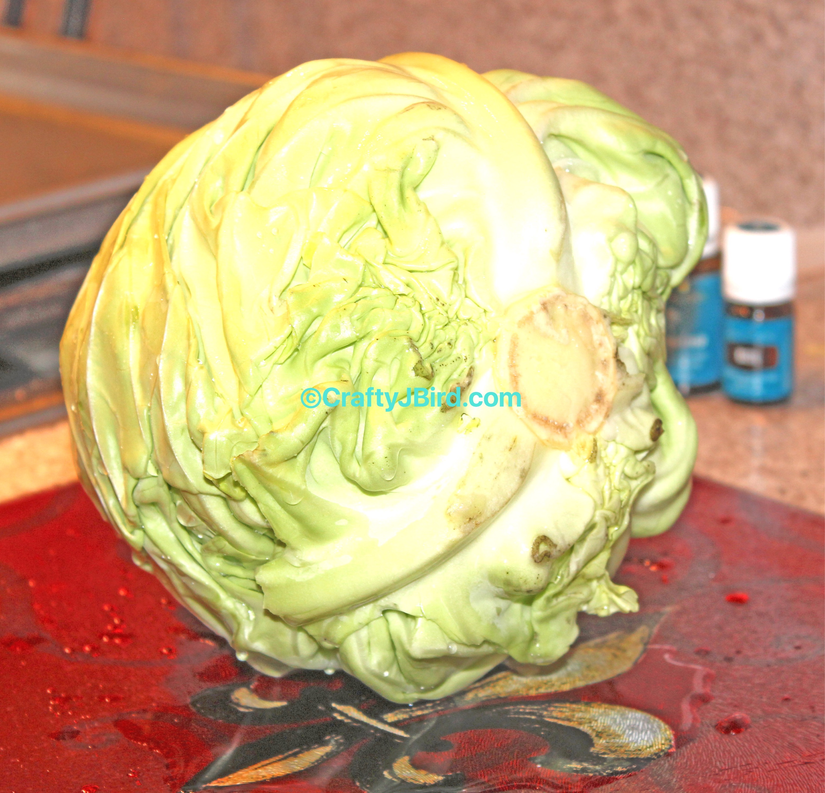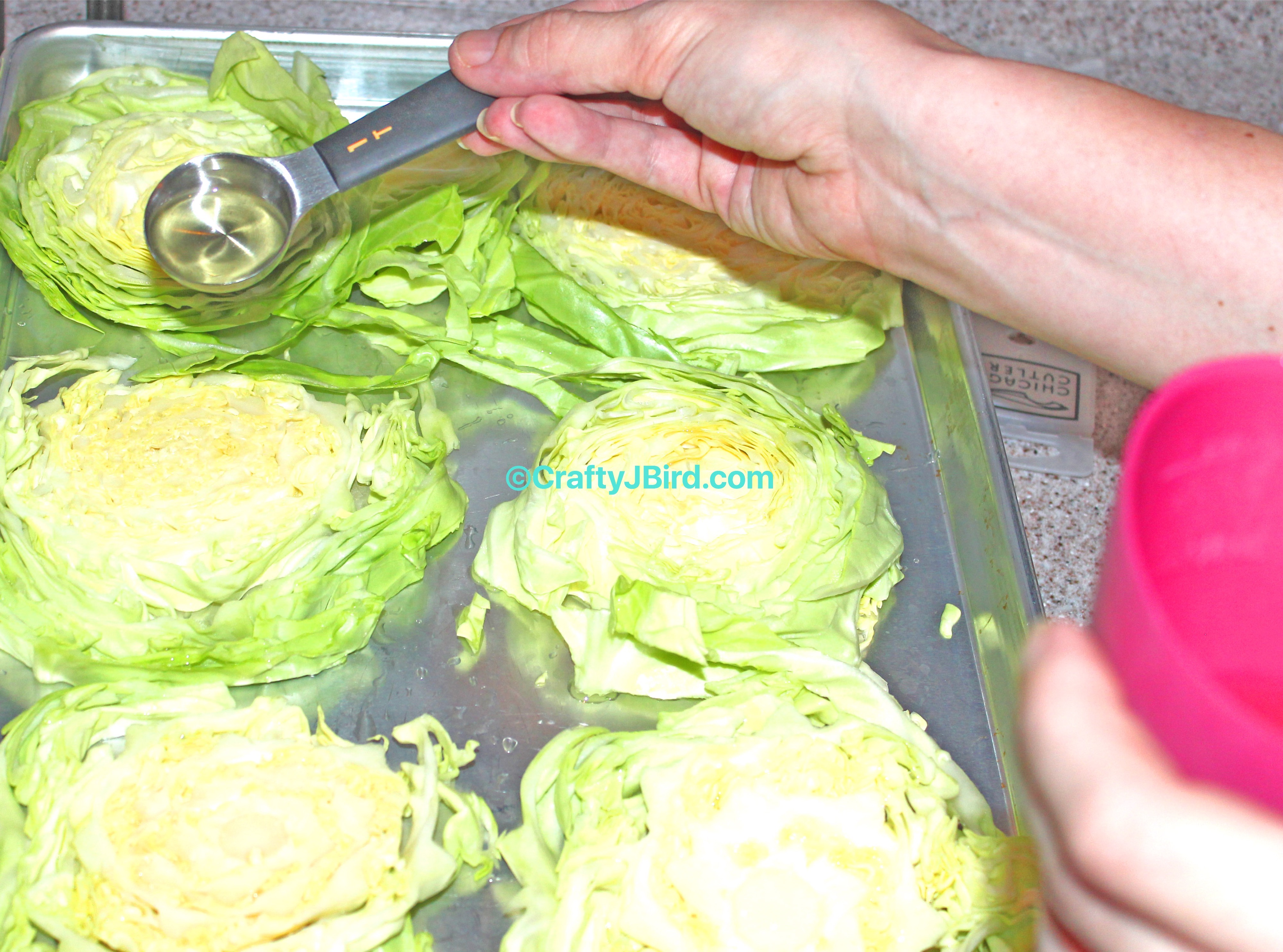 With my Essential Oils in my Olive Oil, I was ready to drizzle my mixture on my sliced cabbage.