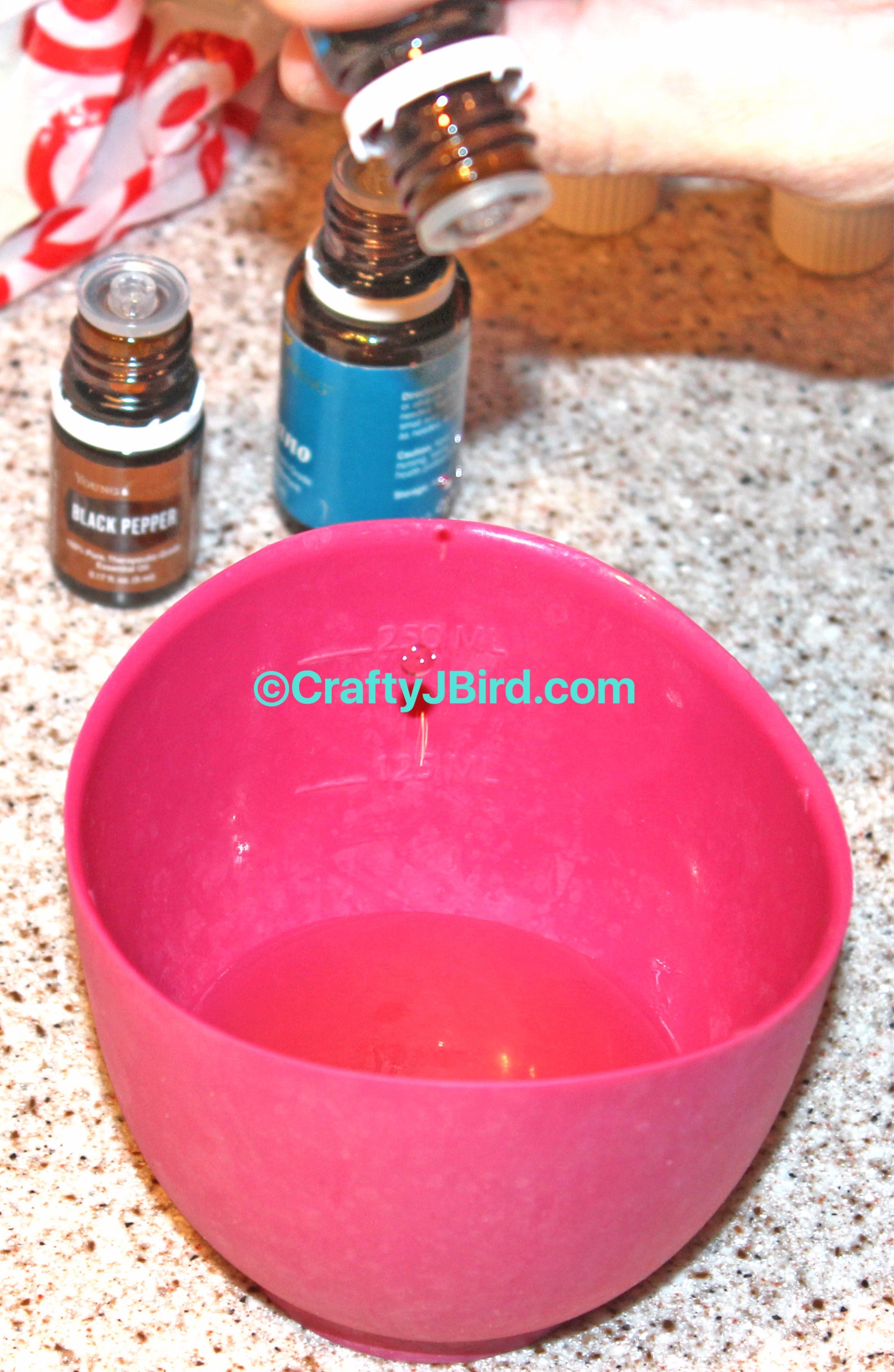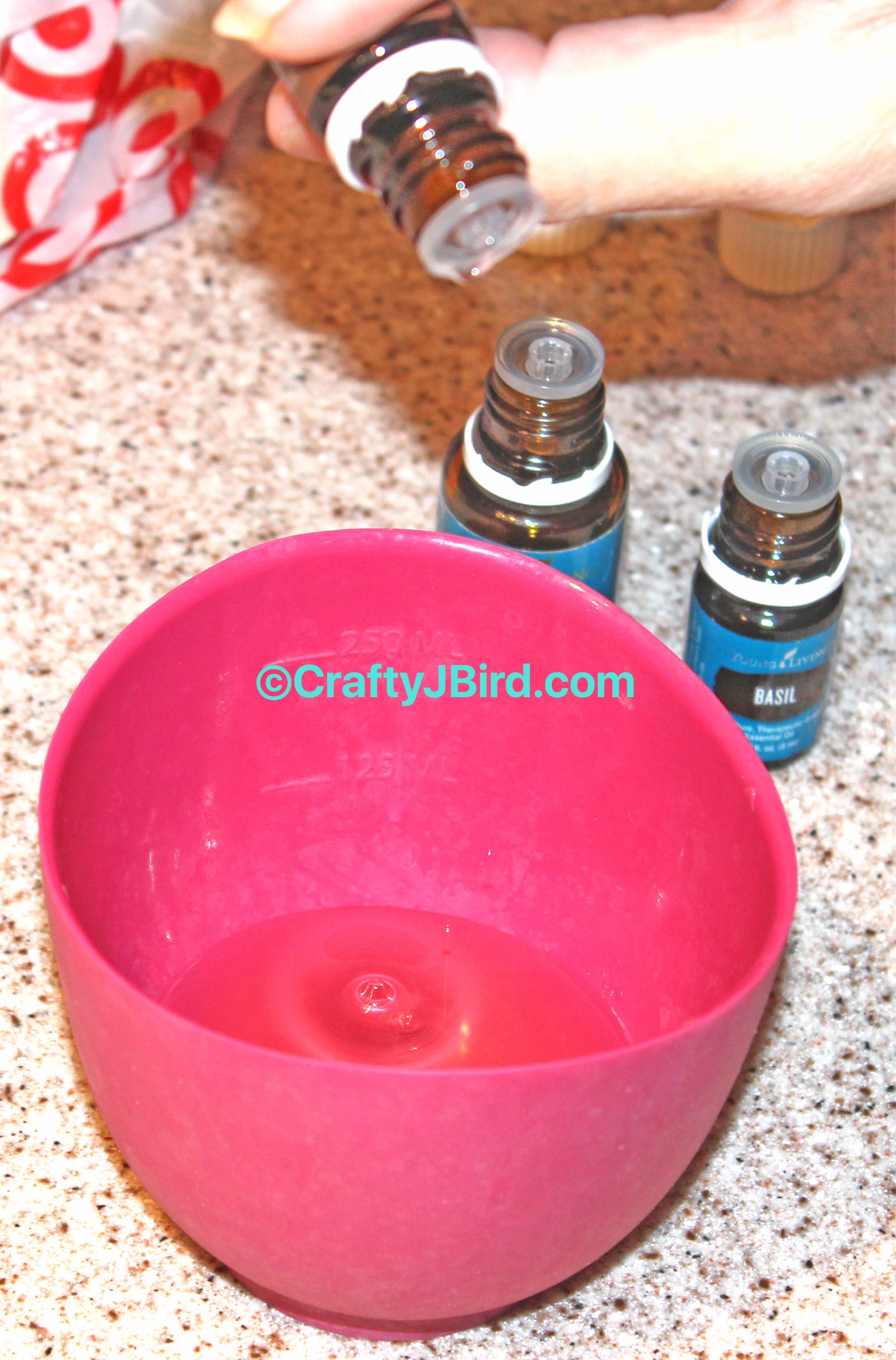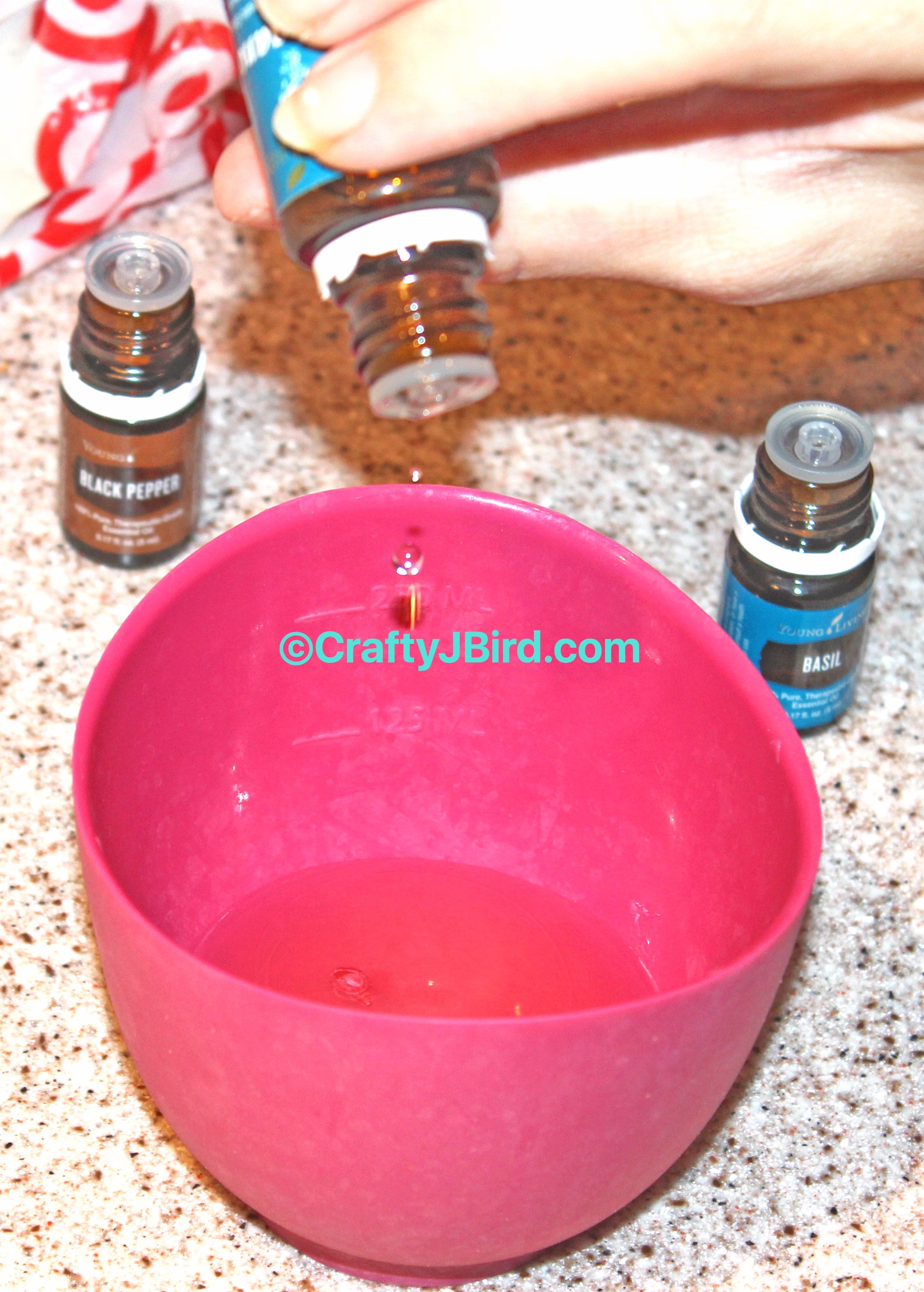 After I had the amount of Olive Oil I wanted in my prep cup, I added a single drop of the Young Living’s Essential Oils I decided to add. I added a drop of Black Pepper Essential Oil, Basil Essential Oil, and Oregano Essential Oil.