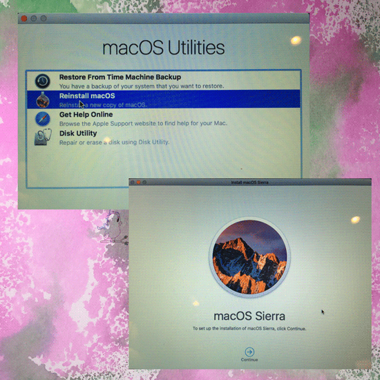 After exiting out of Disk Utility, you will have the macOS Utilities menu pop back up. Here, you will now highlight to Reinstall macOS, and select Continue at the bottom of which this next step will come up for installing the latest macOS. In my case, it was macOS Sierra.