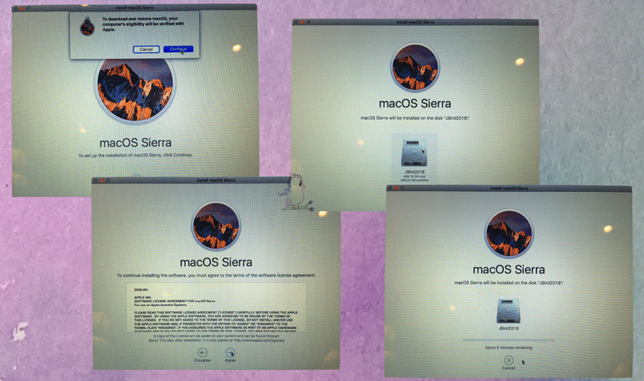 You will then click Continue, where Apple’s software agreement will pop up, and you will click Agree. Once you read and Agree, the next screen will come up to confirm installation where you will click Install.