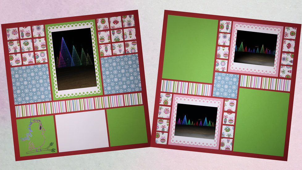 WOW! It’s Finally Friday!! I love Fridays just as much as anyone else since it means the Saints game is closer, but today, I love it even more since Monday is even closer. Though I know everyone dreads Mondays, I’m pretty sure most (at least kids or those at heart) are looking forward to it! Hope everyone has a great day, safe travels for those traveling, and a Very Merry Christmas! Today, I have another great scrapbook double page layout for all those Christmas pictures. So, let’s get started with “Mosaic Moments Dance of the Sugarplums…”