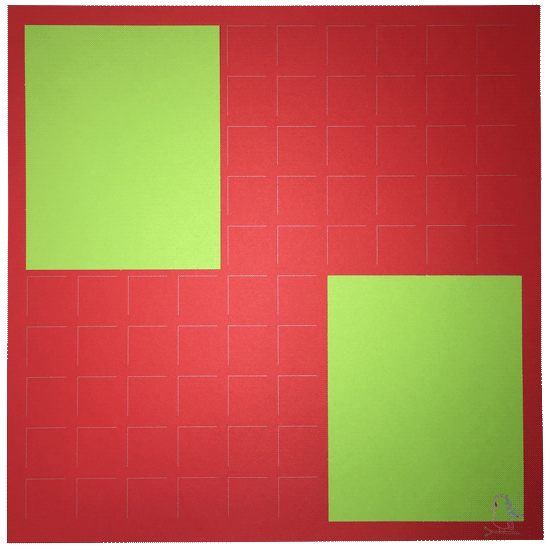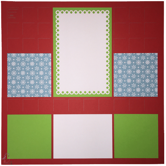 Finally, I carefully added the 1 by 1 inch squares to their places on each side of the double page layout.