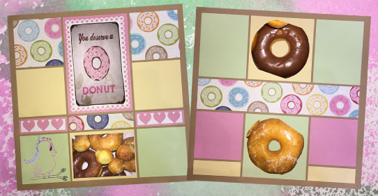 And there you go, another quick page that could be easily finished wherever you go scrapbooking. Since mom and I walked to the donut shop here close to the scrapbooking retreat, I took some pictures of them and added them to my double page layout. Sorry but yes they were so, so good!