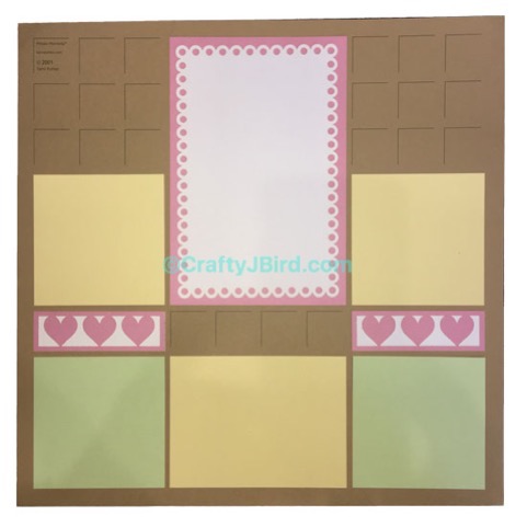 Finally, as far as the solid colors go, I added the pink pieces to the double page layout. Of course, I first had to carefully attach the pink hearts to the white backing along with the lacy white on top of the pink piece as a main photo.