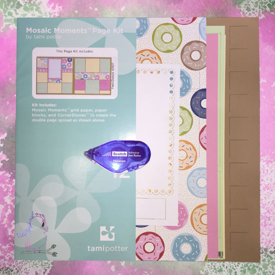 Happy Friday y’all! I’m so sad it’s already Friday but so excited at the same time since one of my favorite aunts and the rest of our group will be here at the scrapbooking retreat this afternoon. Anyways, today I have a super super cute double page layout by Mosaic Moments I have put together. So, let’s get started with “Mosaic Moments Fresh Donuts” double page kit…