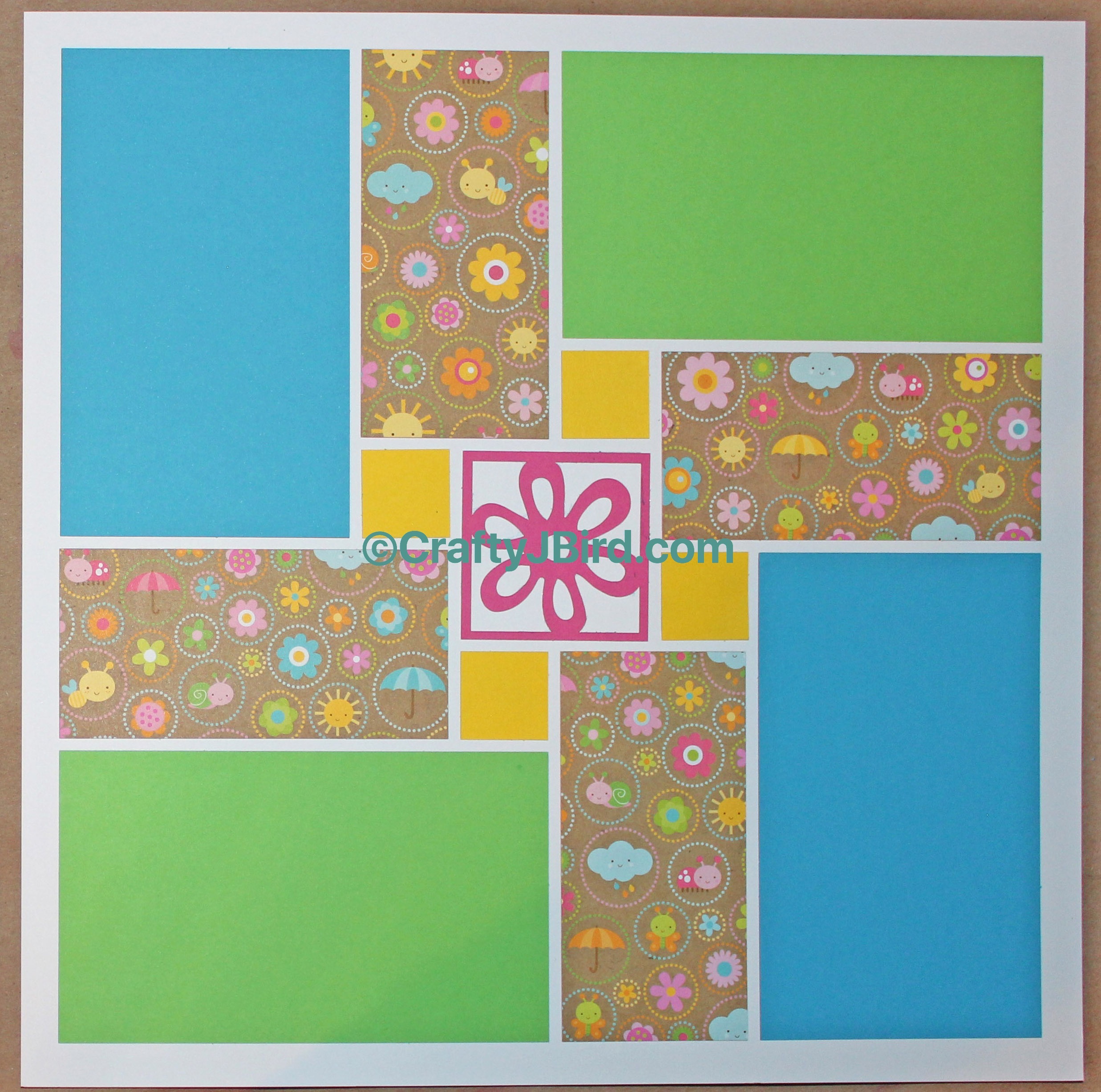 Once again it’s “Scrap It Friday!!” Yep, I know it’s not officially Spring yet; but here in North Louisiana it sure did feel like it was Tuesday and Wednesday of this week. I mean I did have a tank top and flip flops on as well as my windows down, and sunroof opened in my car. Yesterday, on the other hand, was quite cold. Anyways, I thought I would go ahead and still share this double page by Mosaic Moments. Let’s get started with “Mosaic Moments Happy Spring…”
