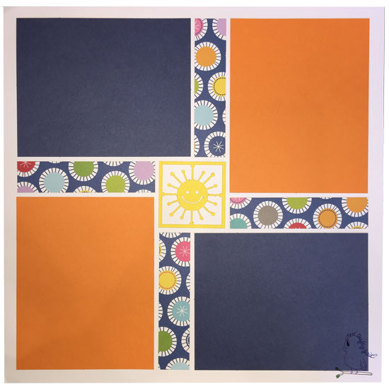 Finally, on the right side of the double page layout, I added the sun to it’s place there in the middle. Of course, I carefully added adhesive to the back and measured up the white backing piece as the rays of the sun are very delicate and could tear easily.