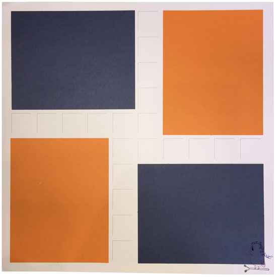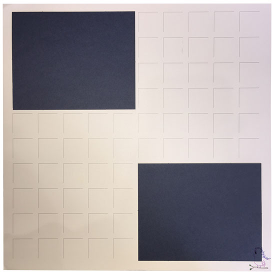 With everything separated, I got to work and put all theblue pieces of cardstock in the place on the double page layout.