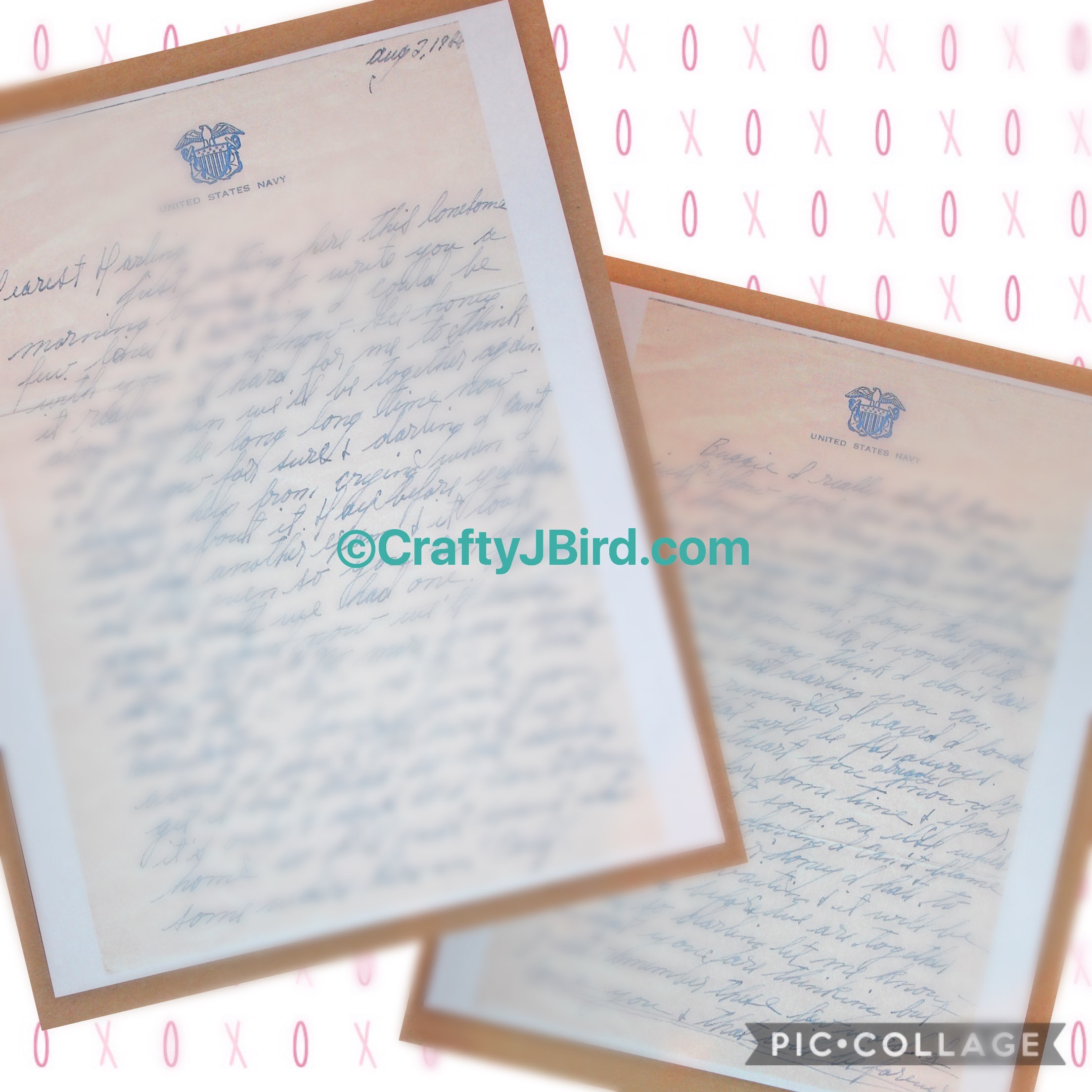 So, back in 2009, I started to work on my family tree. While doing so, I was able to make copies of a scrapbook one of my aunts did of her parents. Within that scrapbook were love letters my grandma and papa wrote to each other while he was off in the US Navy. Therefore, along with pictures of my grandparents, I will be adding these to my double page layout. It’s amazing how not so long ago our parents and grandparents wrote letters like this whether in the military or not. When was the last time you hand-wrote a letter to your someone special?