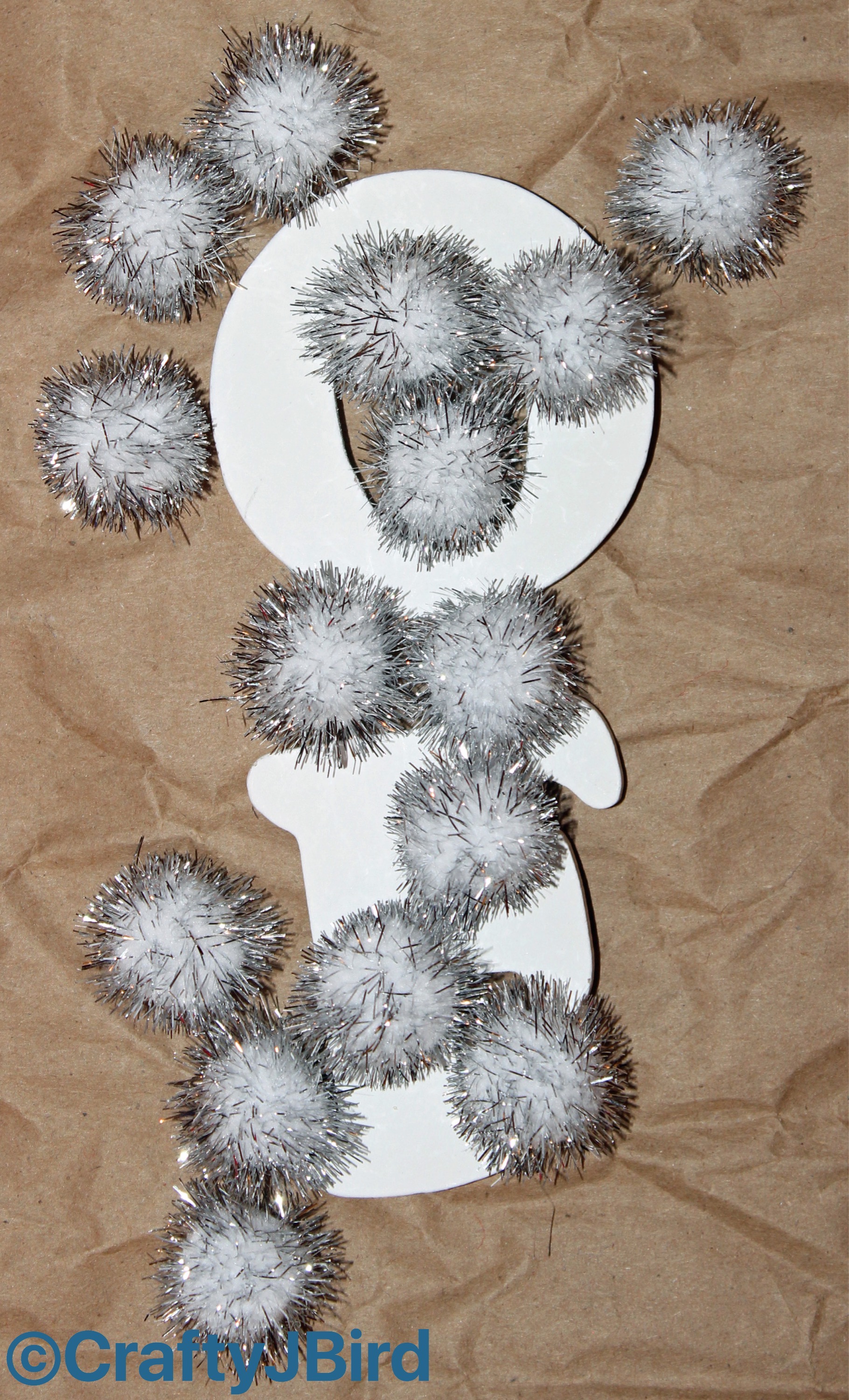 - 3/4″ Silver Pom Poms (about $1.99)