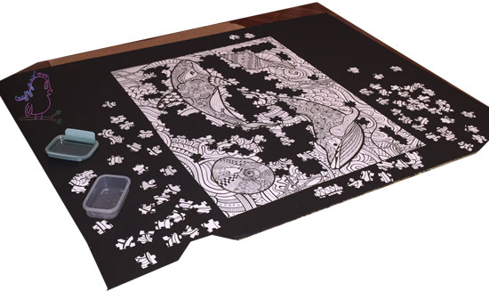 Once I had all my pieces sorted accordingly, I pulled out my black board and assembled my border pieces.