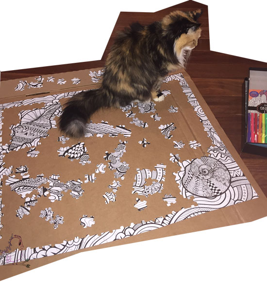 Here is the Kaleidoscope Coloring Puzzle I started about as soon as we got back from Oklahoma while I waited for the other ones I ordered off Amazon.com to arrive. As you can see, I had my favorite little helper helping me throughout the days putting it together. I’m still trying to decide which was harder to assemble, this one of the Castle one. Putting a black and white puzzle together is not the easiest, but it certainly kept my mind going. Since I got tired of coloring and really wanted to start on the Castle one, I have it put to the side to finish hopefully by Christmas.