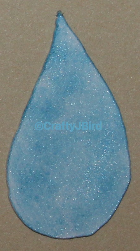 To mix it up a bit for the raindrops, I only used the Glitz Stardust Glitter Gel on about half of them. As you can see, on this particular one, I don’t have any. I used the dark blue of the chalks to outline the drops and the lighter blue for the middles.
