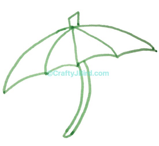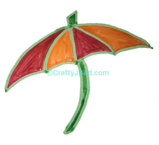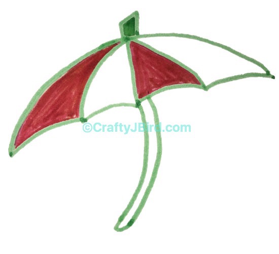 Finally, I used my Tombow Dual Brush Pen number 925 to color in the other two sections of my “umbrella drawing.” I also went back and used my green pen to fill in the top piece and handle.