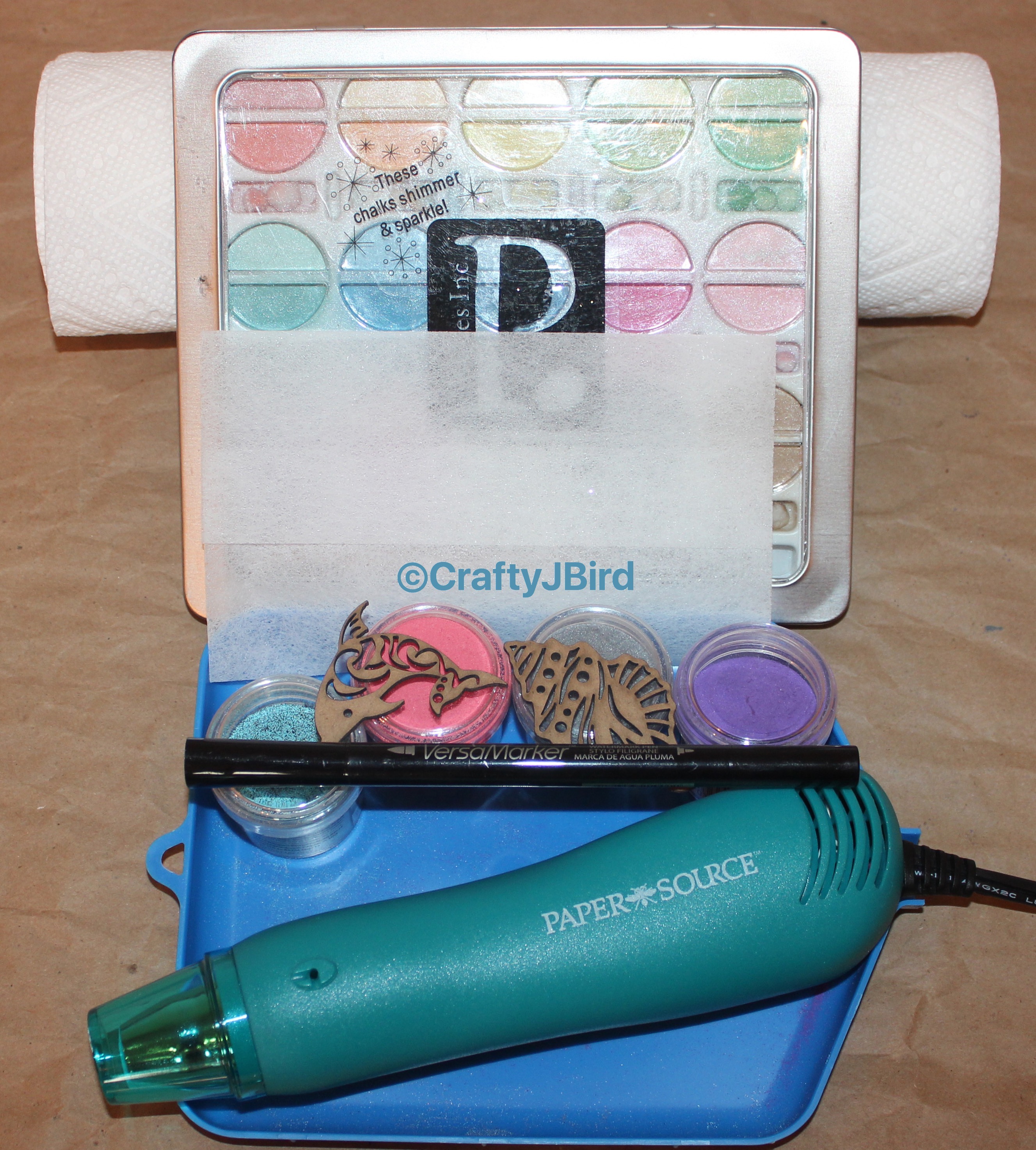 Once you have finished ‘coloring’ the cutout, use your heat gun to ‘set’ the chalks. This step is optional, I just did it to see if it really did anything. From what I can tell, it made my cutout a little more sparkly that if I hadn’t use it. Again, it’s not necessary, I wouldn’t even use it all the time since I don’t keep my heat gun with me at all times like I do my chalks.